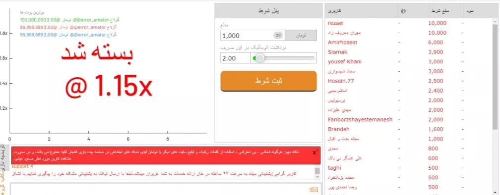 اگر نمودار قبل از ضریب شما منفجر شوید، شما میبازید.