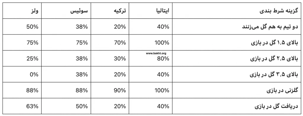 مسابقات جام ملتهای اروپا موسوم به یورو ۲۰۲۰، به زودی آغاز میشود. مانند هر تورنمنت مهم دیگری، قصد داریم گروههای این بازیها را برای پیش بینی فوتبال بررسی کنیم. در این نوشته به سراغ اولین گروه یورو ۲۰۲۰، گروه A میرویم. این گروه شامل تیمهای ملی ایتالیا، ترکیه، سوئیس و ولز میشود. بازیهای این گروه قرار است در دو شهر رم در ایتالیا و باکو در آذربایجان برگزار شود. ایتالیا یکی از مدعیان اصلی قهرمانی در یورو محسوب میشود. اما سه تیم ترکیه، ولز و سوئیس میتوانند به شگفتی تبدیل جام شوند. پیش بینی گروه A یورو را از جنبههای مختلف برای علاقهمندان به شرط بندی فوتبال انجام میدهیم. مجله بخت
