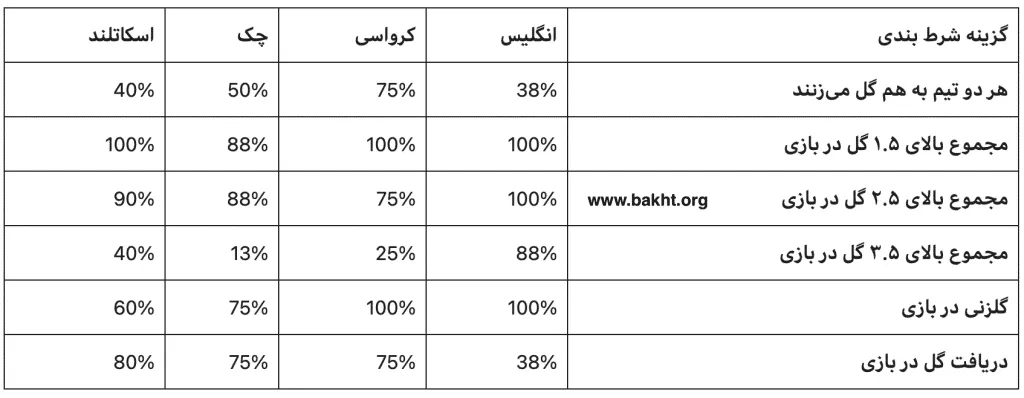 به بررسی پیش بینی گروه D یورو ۲۰۲۰ برای شرط بندی فوتبال رسیدهایم. گروهی که به واسطه حضور انگلیس، اسکاتلند، چک و کرواسی میتواند جذابیتهای زیادی را به همراه داشته باشد. پیش از این گروه اول، دوم و سوم بازیهای جام ملتهای اروپا را بررسی کردهایم. بازیهای این گروه قرار است در دو کشور انگلیس و اسکاتلند برگزار شود. این گروه بازی حساسی مثل انگلیس و اسکاتلند را خلق خواهد کرد و تقابل انگلیس و کرواسی هم میتواند یادآور نیمه نهایی جام جهانی قبلی باشد. چک هم بعد از سالها به یک تورنمنت بزرگ رسیده تا خودش را نشان دهد. به همین دلیل بازیهای مهمی برای پیش بینی فوتبال داریم. مجله بخت