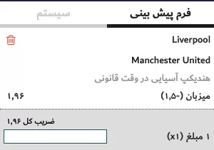 معمولا برای گیج نشدن مخاطبان به سراغ گزینههای هندیکپ نمیرویم. اما این گزینه ضریب مناسبی دارد و به راحتی قابل توضیح است. برای بردن این گزینه شرطبندی، لیورپول باید با اختلاف بیشتر از یک گل منچستریونایتد را شکست دهد. در نتیجه تنها پیروزی از سمت قرمزها کافی نیست. میزبان باید با اختلاف حداقل ۲ گل از سد شیاطین سرخ بگذرد. اتفاقی که انتظار داریم در نهایت رخ دهد.