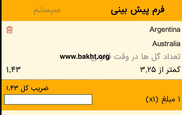 انتظار بازی کم گلی را داریم. استرالیا برای دفاع کردن وارد زمین میشود. آنها حتی در بازیهایی که بردند هم دفاع کردند. اکثر بازیهای استرالیا زیر ۲.۵ گل ثبت کرده است. مثلا پنج مسابقه از شش بازی آخر استرالیا فراتر از ۲ گل نرفت. انتخاب این گزینه باعث میشود که حتی در صورت به ثمر رسیدن بیشتر از سه گل در بازی، بخشی از پول شما برگردد. برای ریسک بیشتر میتوان روی مجموع زیر ۳ گل یا مجموع زیر ۲.۵ گل هم سرمایهگذاری کرد. تیم ملی آرژانتین در اکثر بازیها بیشتر از ۲ گل ثبت نکرده است.