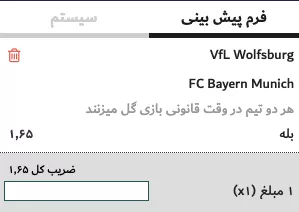 توقع داریم که در نهایت دروازه هر دو تیم را باز شده ببینیم. خط دفاع بایرن مونیخ در دو ماه اخیر وضعیت خیلی خوبی ندارد. طی شش مسابقه از نه بازی آخر خارج از خانه بایرن مونیخ در رقابتهای مختلف، تیم میزبان دروازه این تیم را باز کرد. گرگها در هفت مسابقه از هشت بازی خانگی این فصل در مسابقات مختلف، به تیم مهمان گل زدند. همچنین سه مسابقه از پنج بازی آخر خانگی وولفسبورگ در رقابتهای مختلف با گلزنی هر دو تیم تمام شد.