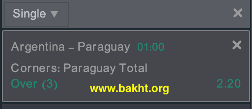 هندیکپ آسیایی بالای ۳ کرنر برای پاراگوئه، تنها انتخاب ما در این بازی است.
