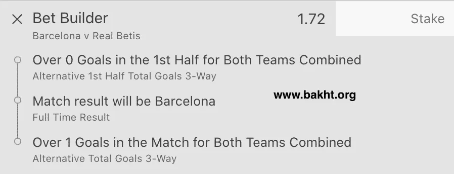 با توجه به ضرایب بازی بارسلونا و رئال بتیس، سه گزینه شرط بندی را برای میکس شرط بندی زیر نظر خواهیم داشت.