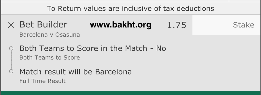 برای تقابل بارسلونا و اوساسونا، دو گزینه شرط بندی را در نظر خواهیم داشت. هر کدام از این دو گزینه میتواند در شرط میکس قرار بگیرد.