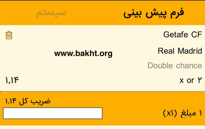 رئال مادرید در کورس قهرمانی برای لالیگا است و باید این بازی را ببرد. رئالیها شرایط خوبی دارند و بعید است مقابل ختافه که شاید در پایان فصل سقوط کند، امتیاز از دست بدهند. با این حال برای کم کردن ضریب ریسک و خطر، گزینه شانس دو برابر را انتخاب میکنیم. این گزینه میتواند در فرم میکس شما قرار بگیرد و در صورتی برنده میشود که رئال مادرید این بازی را نبازد. رئال مادرید ۱۴ بازی پیاپی را در رقابتهای مختلف نباخته و در این مسیر ۱۲ پیروزی بدست آورده است. ختافه تنها یک مسابقه از ۱۲ بازی آخرش را برده است. آنها پنج بازی پیاپی است که در لیگ اسپانیا نتوانستهاند به پیروزی برسند.