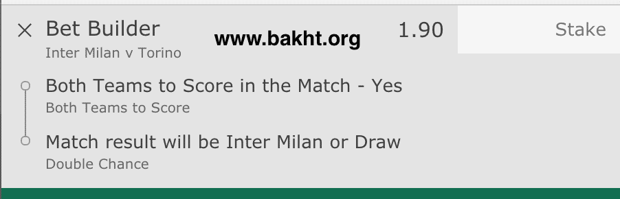 انتظار داریم در این مسابقه هر دو تیم به هم گل بزنند. با توجه به عملکرد سینوسی اینتر در مسابقات سری آ و لیگ قهرمانان اروپا، گزینه برد اینتر در این بازی هم ریسکی است. در نتیجه تصمیم گرفتیم به گزینههای ریسکی ادامه دهیم. خط دفاع اینتر عملکرد درخشانی ندارد. تورینو هم معمولا به رقبا گل میزند. حتی آمار بازیهای رودرروی دو تیم هم از این گزینه حمایت میکند. شش تقابل از هفت مصاف آخر دو تیم در ورزشگاه جوزپه مهاتزا با گلزنی اینتر و تورینو به پایان رسید.