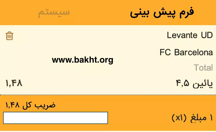 این انتخاب کمی ریسکی است. لوانته تیمی کاملا دفاعی است و برای گل نخوردن وارد زمین خواهد شد. خط حمله لوانته مشکلات زیادی دارد و بعید است به گل برسد. لوانته در دو مسابقه از سه بازی آخر خانگی حتی گل نزده است. شش مسابقه از هشت بازی آخر خانگی لوانته در مجموع زیر ۲.۵ گل و هفت مسابقه زیر ۳.۵ گل داشته است. دو مسابقه از شش بازی آخر خارج از خانه بارسلونا فراتر از ۴ گل رفته است. شش تقابل آخر دو تیم در رقابتهای مختلف هم در مجموع زیر ۴.۵ گل را ثبت کرده است.