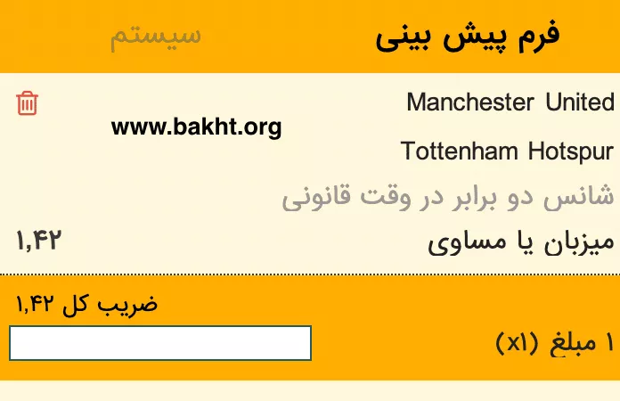 انتظار داریم منچستریونایتد این مسابقه را نبازد. شاگردان اریک تن هاگ بعد از شروع بعد اول فصل، در شرایط تقریبا خوبی قرار گرفتند. آنها در هفت مسابقه اخیر در لیگ برتر انگلیس تنها یک بازی را باختند که آن هم به منچسترسیتی در زمین حریف بود. همچنین منچستریونایتد در سیزده بازی آخر خانگی در لیگ برتر انگلیس، تنها یک شکست ثبت کرد. تاتنهام هاتسپر در بازیهای خارج از خانه مانند لندن عمل نمیکند. تیم آنتونیو کونته در پنج بازی آخر خارج از خانه در رقابتهای مختلف، تنها یک مسابقه را با پیروزی به پایان رساند.