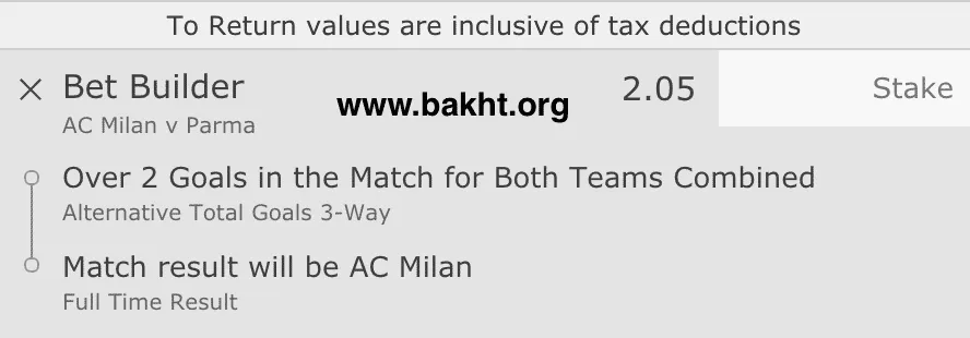 برای بازی میلان و پارما، دو گزینه شرط بندی را در شرط میکس خود در نظر گرفته ایم.