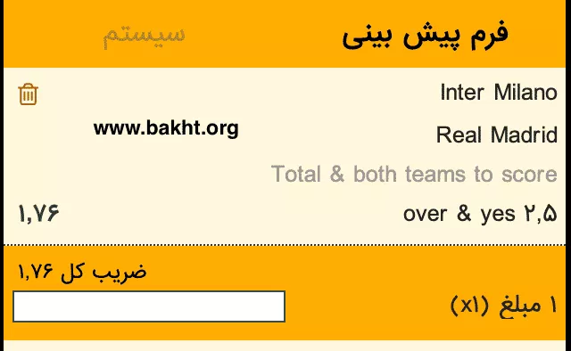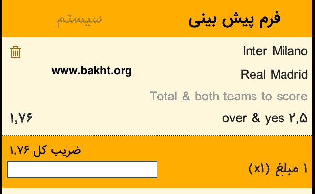 برای بازی اینتر و رئال مادرید، یک گزینه شرط بندی را به صورت شرط تکی میتوان در فرم میکس قرار داد. این گزینه شامل دو مورد میشود.