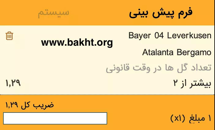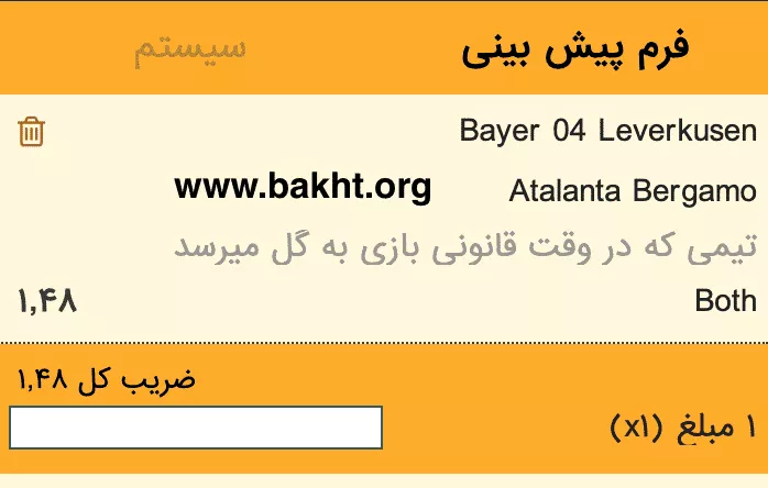 ریسک کردن روی برد و باخت هرکدام از دو تیم، میتواند عواقب زیادی را به همراه داشته باشد. به همین دلیل گزینه مجموع آسیایی بالای ۲ گل را انتخاب میکنیم. گزینه مجموع آسیایی همان مجموع بالای ۲.۵ گل است اما ریسک کمتری دارد. در صورتی که بازی تنها ۲ گل داشته باشد، پول شما برمیگردد. ثبت بیشتر از ۲ گل، باعث برنده شدن شرط شما میشود. دوازده مسابقه از سیزده بازی آخر بایرلورکوزن در رقابتهای مختلف حداقل ۲ گل ثبت کرد. هشت مسابقه از ده بازی آخر دو تیم در مجموع بالای ۲.۵ گل داشت. سه مسابقه از پنج بازی آخر آتالانتا آمار مشابهی ثبت کرد.