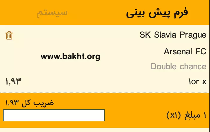 ضریب نباختن تیم چکی، بسیار بالا است. این در حالی است که اسلاویا پراگ، بهترین تیم یک سال و نیم اخیر فوتبال جمهوری چک محسوب میشود. اسلاویا پراگ از نظر کیفیت بازی توان متوقف کردن تیمهایی همچون بارسلونا و اینتر را در یک سال اخیر داشته است. آنها در مراحل حذفی امسال لیگ اروپا تا امروز رنجرز و لسترسیتی را حذف کردهاند و قصد دارند با حذف آرسنال، مثلث حذف تیمهای بریتانیایی را تکمیل کنند. از طرفی آرسنال هم با نتایج سینوسی به خوبی نشان داده که میتواند غافلگیر شود.