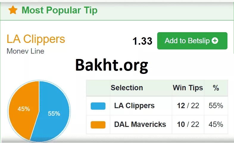 بیشترین پیش بینی انتخاب شده توسط کاربران در سایت های شرط بندی برد لس آنجلس کلیپرز با ضریب 1.33 است.
