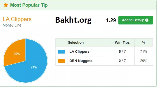 همچنین بیشترین انتخاب از سوی کاربران سایت های شرط بندی، برد لس آنجلس کلیپرز با ضریب 1.29 است.