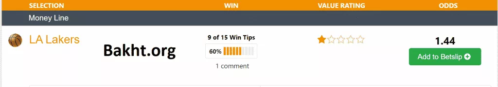 همچنین بیشترین گزینه انتخاب شده در میان کاربران سایت های شرط بندی، برد لس آنجلس لیکرز با ضریب 1.44 بوده است. با توجه به اینکه لس آنجلس لیکرز در صورت پیروزی قهرمان خواهد شد، احتمال پیروزی لس آنجلس لیکرز بالا است.