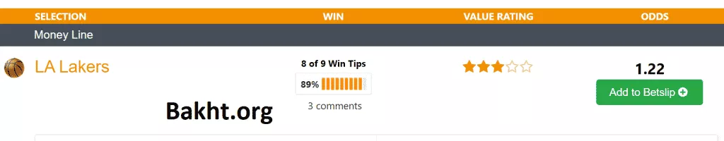 بیشترین گزینه انتخاب شده از طرف سایتهای شرط بندی برد لس آنجلس لیکرز است. -9.50 لیکرز هم با ضریب 1.95 از جمله گزینه های پرانتخاب است.