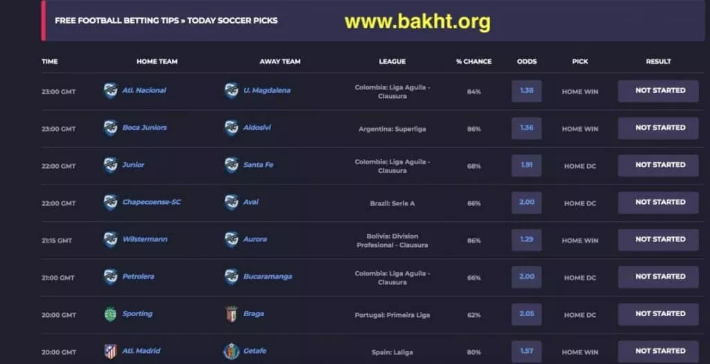 این سایت همچنین بخشی به عنوان پیش بینی سیستم دارد که بازی های روز را بررسی و پیش بینی میکند.