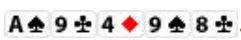 در ادامه وقتی ترن، 9 پیک را رو می کند، 50 دلار شرط می کنید و دوباره کال می شوید. ریور 8 گشنیز را رو می کند تا کارت های مشترک به شرح زیر نهایی شوند: