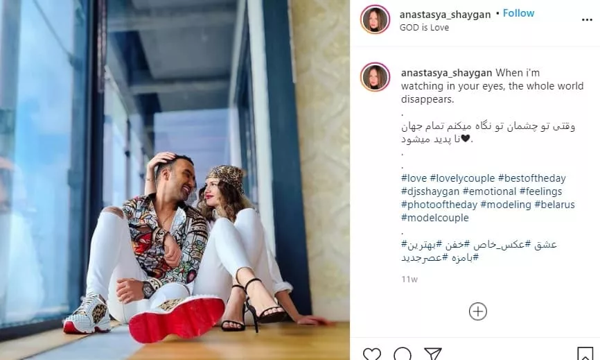 پس از رزا، او حالا با دختری از بلاروس یا روسیه سفید دوست شده است. این دختر آناستازیا نام دارد و نام آناستازیا شایگان را روی اکانت اینستاگرام خود گذاشته است. این دختر که چهرهای معصوم و زیبا دارد نیز حالا سلبریتی شده و 128 هزار فالور دارد. همینطور سایت شرط بندی تبلیغ میکند. اولین پست اینستاگرام این دختر مربوط به دسامبر 2020 یعنی سه ماه پیش است. مشخص نیست او قبل از آشنایی با شایگان اکانت اینستاگرام نداشته یا مطالب قبلی را حذف کرده است. به هر حال در سه ماه اخیر او تقریبا یک روز در میان محتوایی داشته است. پیانو میزند، میرقصد، ورزش میکند و همینطور شایگان ویدئویی از حلقه در دست او کردن ساخته است. به نظر این دو با هم نامزد کردهاند.