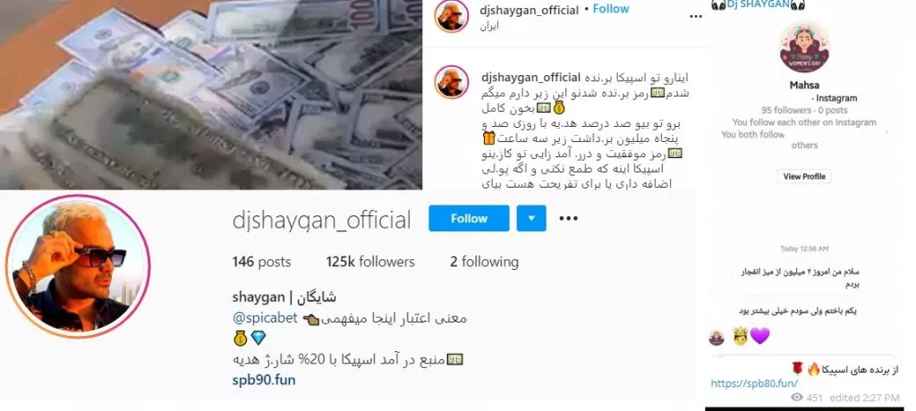 از زمانی که دی جی شایگان و میس رزا با هم بودند، این دو سایت شرط بندی رز بت را تبلیغ میکردند. این دو درآمد خوبی از این راه داشتند و به شیوههای متفاوت آن را تبلیغ میکردند. با این حال شایگان مدیر اصلی سایت بود. با جدایی این دو، رابطه میس رزا با این سبک از درآمدزایی قطع شد. او البته هنوز سایت شرط بندی دیگری را معرفی نکرده است. با این حال شایگان به قدرت مشغول تبلیغ سایت شرط بندی خود است. او در حال حاضر با قدرت سایت شرط بندی اسپیکا را تبلیغ میکند. همان دروغهای همیشگی را نیز در این تبلیغ میگوید.