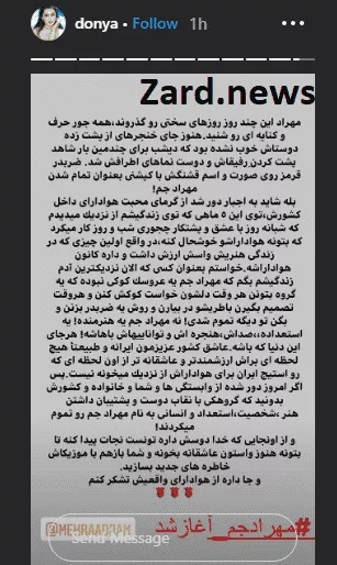 دنیا جهانبخت هم در واکنش به این حواشی با تایید اینکه 5 ماه است نزدیک ترین آدم در زندگی مهراد جم است در این باره نوشته است: