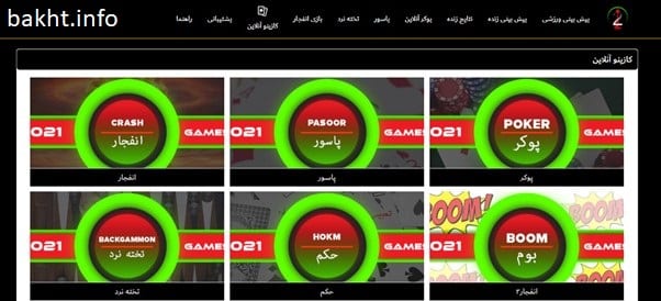 بازی های کازینویی هم بخش دیگری از 021 است. از بازی محبوب انفجار گرفته تا پوکر، تخته نرد، رولت، باکارات، بلک جک و … . کاربران برای واریز پول می توانند از درگاه مستقیم بانکی، کارت به کارت، پرفکت مانی و کارت شارژ ماتریکس استفاده کنند. بعد از واریز اولین پول، کاربر بونوس 10 درصدی دریافت می کند.