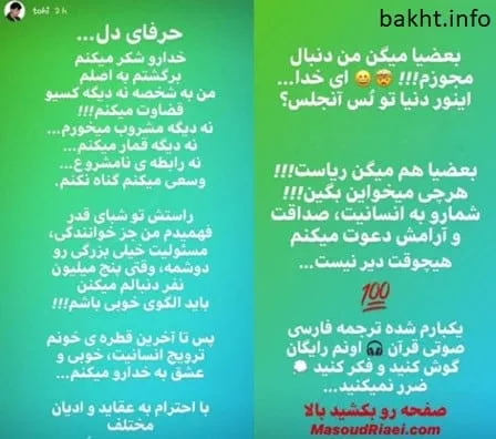 او در شب قدر هم استوری هایی با همین مضمون منتشر کرده بود. حرف هایی که با واکنش مثبت مادرش مواجه شد.