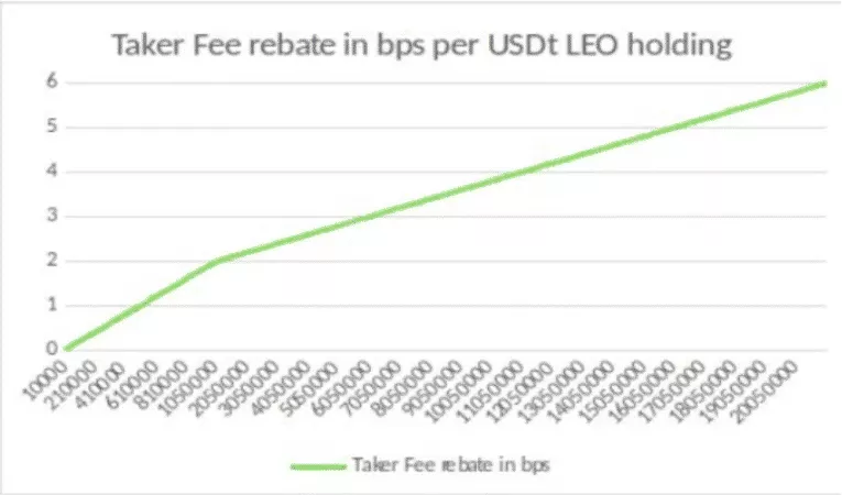 - کاهش کمیسیون دریافتی از کاربران استفاده کننده از محصولات شرکت iFinex: دو مجموعه بیت فینکس (Bitfinex) و ات فینکس (EthFinex) از زیرمجموعه های شرکت iFinex به شمار می روند که یک شرکت مستقر در هنگ کنگ است. همه دارندگان توکن LEO در هزینه کمیسیون خرید خود با 15 درصد تخفیف همراه خواهند بود. اخیراً بیت فینکس اعلام کرده است که تمام دارندگان لئو در صورتیکه بیش از 5000 دلار (یا به عبارت دقیق تر، تتر) از لئو داشته باشند، 10 درصد تخفیف بیشتر نیز خواهند گرفت. این مشمول دارایی کاربران از لئو در ماه گذشته آنان (محاسبه تمام روزهای ماه) می شود. همچنین به ازای هر 10000 تتر بیشتر از توکن لئو که داشته باشید، 0.05 درصد تخفیف بیشتر نیز مشمول حال شما خواهد بود. به این ترتیب اگر شما 5 میلیون دلار لئو داشته باشید، علاوه بر تخفیفات قبلی، 25 درصد تخفیف بیشتر در کارمزد معاملات نیز خواهید داشت.