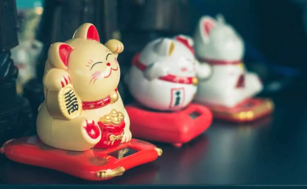 مانکی نکو، معروف به گربه گربه پیشواز، یک طلسم بسیار محبوب ژاپنی برای خوش شانسی است. این طلسم را میتوان در اندازههای مختلف یافت. نسخههای بزرگتر اغلب در خارج از رستورانها و سایر مشاغل که امیدوارند موفق شوند وجود دارند. منشأ دقیق مانکی نکو در طول زمان از دست رفته است، اما یکی از رایجترین داستانها در مورد آن معبد گوتوکو (Gotoku) است. یک روز، یک نجیبزاده در حال عبور بود که طوفان شدیدی شروع شد. او زیر درختی در نزدیکی خود پناه گرفت، اما متوجه شد گربهای به او اشاره میکند که مدت کوتاهی بعد به معبد بیاید. با کنجکاوی این که چرا این گربه اینگونه رفتار میکند، او از درخت دور شد. چند لحظه بعد درخت توسط یک صاعقه عظیم مورد اصابت قرار گرفت. آن نجیبزاده بعداً حامی معبد شد تا از گربه برای نجات جانش تشکر کند.