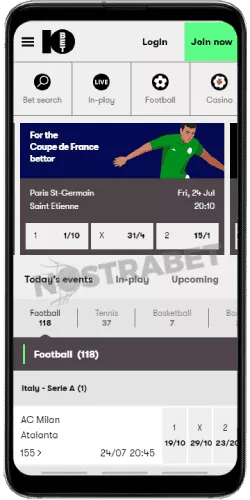 سایت 10 بت به خوبی برای نسخه موبایل آپدیت شده است و میتوانید علاوه بر استفاده از اپلیکیشنها، از نسخه رسپانسیو این سایت در مرورگر موبایل خود استفاده کنید.