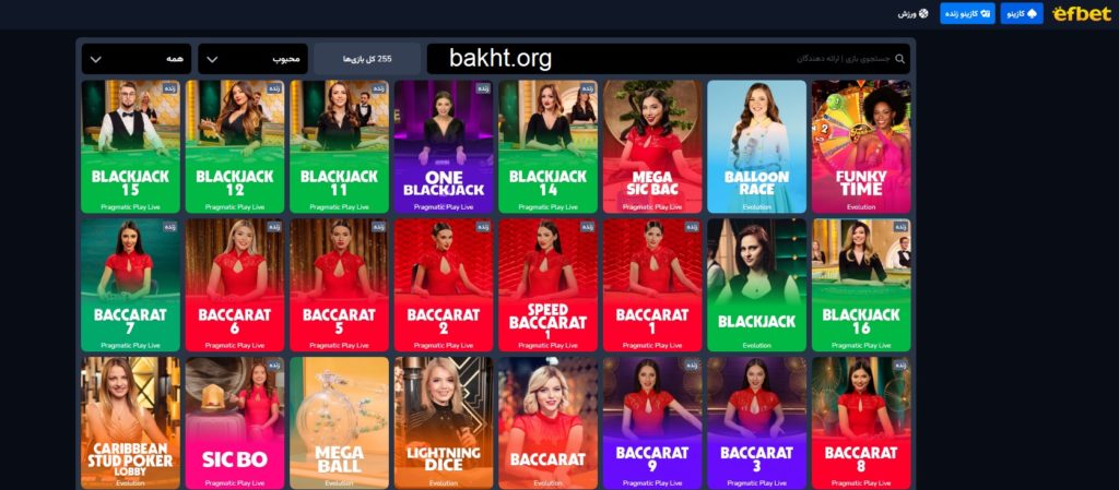 اف بت (efbet) با ارائه خدماتی از جمله پیش بینی ورزشی و کازینو آنلاین، به عنوان یک سایت شرط بندی فارسی زبان مشغول به فعالیت است.