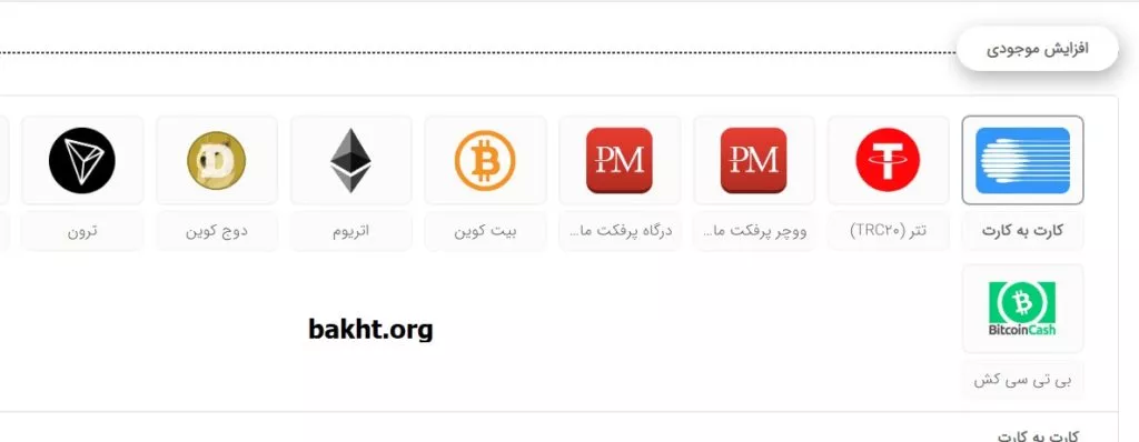 | شارژ حساب | کارت بانکی، پرفکت مانی، ارز دیجیتال |