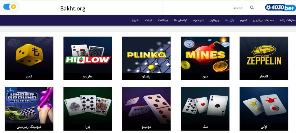 برخی از بازیها عبارتند از: بازی مین، بازی پلینکو، بازی های لو، بازی تاس، بازی دومینو و بازی تخته نرد. علاوه بر اینها بازی انفجار (زیپیلین) هم در نظر گرفته شده است.