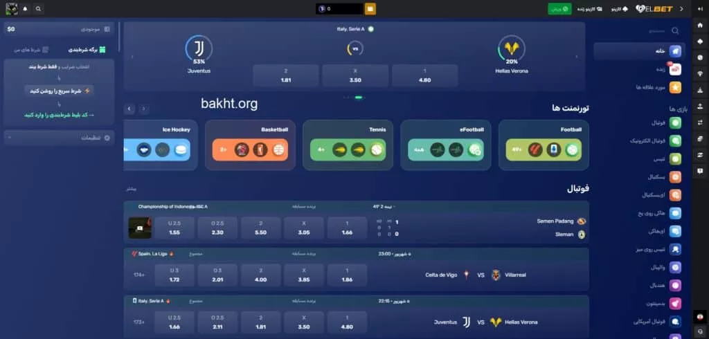 در حال حاضر 30 رشته ورزشی فوتبال، والیبال، بسکتبال، بیسبال، هندبال و تنیس را در این سایت میتوانید پیش بینی کنید. علاوه بر این میتوانید بر روی بازیهای الکترونیکی از جمله دو تا و لیگ آف لجندز هم پیش بینی کنید.