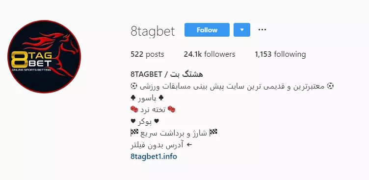 صفحه اینستاگرام 8 تگ بت بیش از 24 هزار نفر عضو دارد.