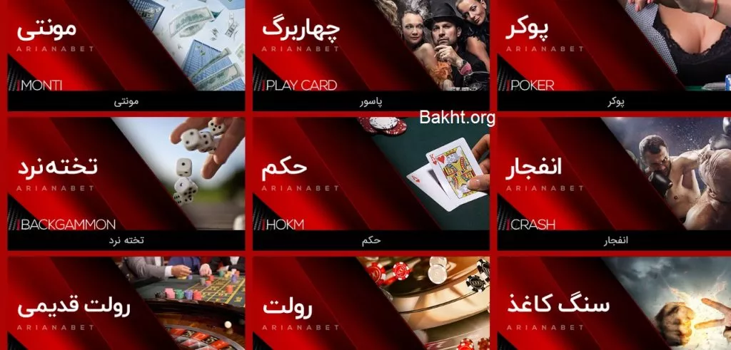 سایت ویوا آریانا حدود 12 بازی کازینویی مهارتی، شانسی و کارتی دارد که لیست آنها به شرح زیر است: