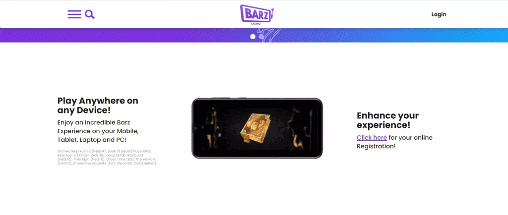 بازیکنان از اینکه بدانند بارز کازینو با همه تلفنهای هوشمند از جمله آیپد، آیفون، تبلت و تلفنهای اندروید سازگار است، بسیار خوشحال خواهند شد. رابط کاربری گرافیکی کاربرپسند نسخه وب کازینو بارز، استفاده از آن را در هر دستگاه تلفن همراه امکانپذیر میکند. هنگام رفتن از لپ تاپ به رایانه لوحی، کیفیت بازیها تحت تأثیر قرار نمیگیرد. بازیکنان میتوانند طیف وسیعی از بازیها را هنگام استفاده از دستگاه تلفن همراه انتخاب کنند.