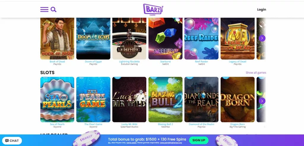 بازیکنانی که در کازینو بارز به دنبال سرگرمیهای آسان، تعاملی و منصف هستند، بلافاصله آنچه میخواهند را مییابند. این کازینو دارای طیف گستردهای از بازیهای منحصر به فرد و بونوسهای شگفتانگیز است.