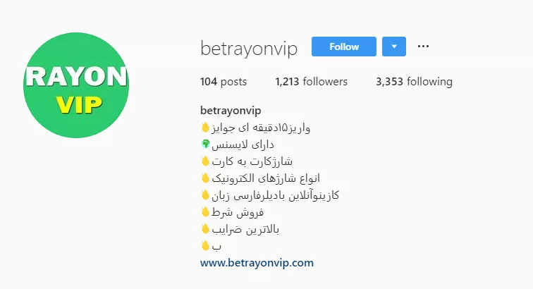 صفحه اینستاگرام رایون بت، 25 هزار عضو دارد. این صفحه هم مانند کانال تلگرام رایون بت، کاملا به روز است. از نکات قابل توجه در این سایت، قابلیت شارژ حساب با بیت کوین است.