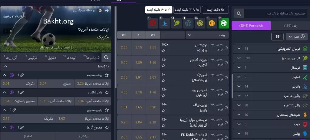 برای رویدادهای مختلف، آپشنهای متعددی از جمله هندیکپ، کارت زرد و قرمز و شرط های انفرادی در دسترس قرار دارد.