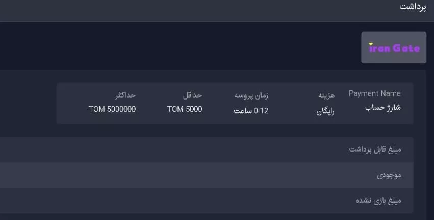 | حداقل مبلغ واریز | 10 هزار تومان |