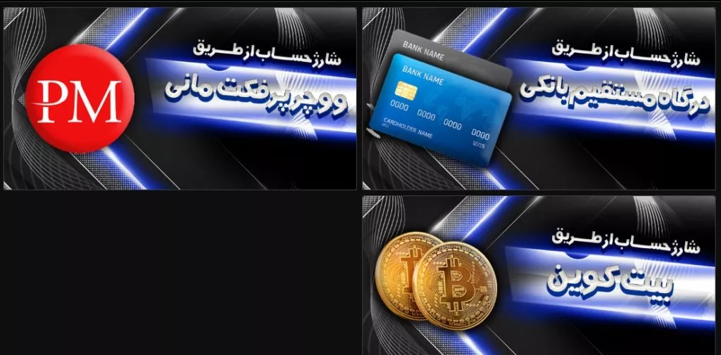 | شارژ حساب | کارت بانکی، پرفکت مانی، بیت کوین |