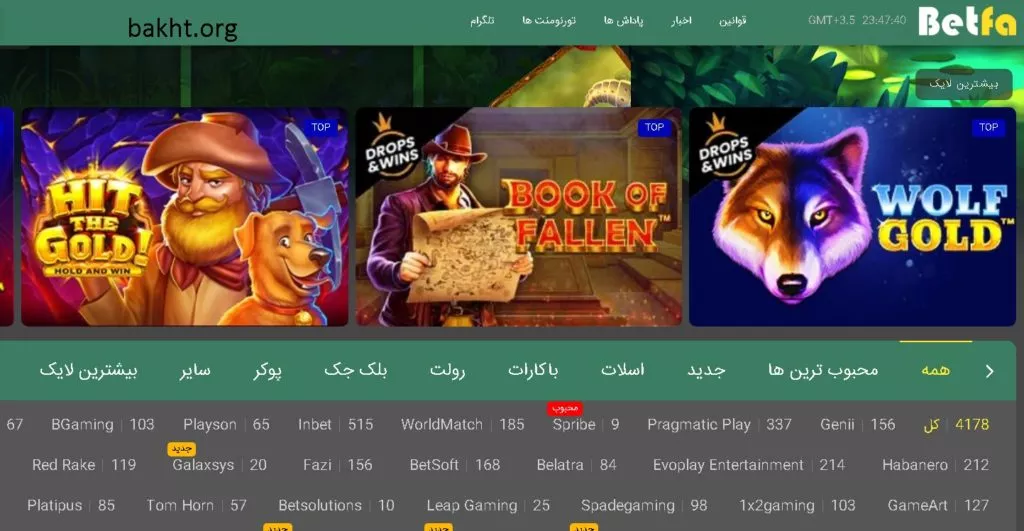 در قسمت پایین این صفحه، بازیها بر اساس توسعه دهندگان سایتهای شرط بندی نیز قابل فیلتر کردن است.