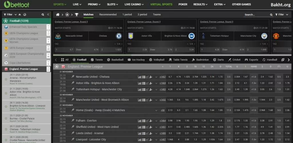 صفحه شرط بندی ورزشی آنها امکانات بسیار خوبی دارد. دسته بندی را در سمت چپ میبینید. سراغ فوتبال و بعد لیگ برتر انگلیس رفتیم. بیش از 1400 آیتم شرط بندی در خصوص مسابقات مهم وجود دارد که با وان ایکس بت برابری میکند. برای هر مسابقه 6-7 دسته متفاوت شرط دارند. با این حال اجازه نمیدهند کاربر از یک مسابقه میکس بسازد. از هر مسابقه تنها یک آیتم میتواند در میکس باشد.
