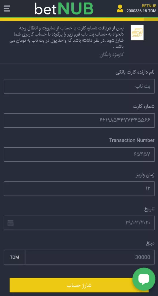 شارژ حساب در بت ناب از طریق واریز به حساب بانکی و پرفکت مانی امکان پذیر است.