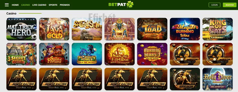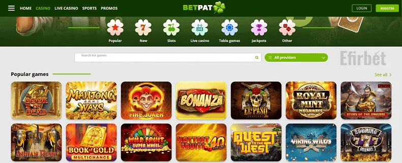 اگر میخواهید چیز متفاوتی را تجربه کنید، به قسمت کازینو بت پت مراجعه کنید. در آنجا، مجموعهای قابل توجه از عناوین بازیهای کازینو را خواهید دید که توسط شرکتهای نرم افزاری پیشرو در صنعت کازینو ایجاد شده است. به لطف آنها، مشتریان میتوانند جکپاتهای متعدد، اسلاتها، بازیهای کازینوی زنده، بازیهای رومیزی کارتی و موارد دیگر را امتحان کنید.