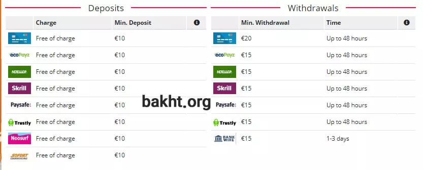 برای برداشت جایزه هم روشهای مطمئنی در دسترس قرار دارد، حداقل مبلغ قابل برداشت 15 یورو است که ممکن است واریز آن از 1 تا 3 روز به طول بیانجامد.