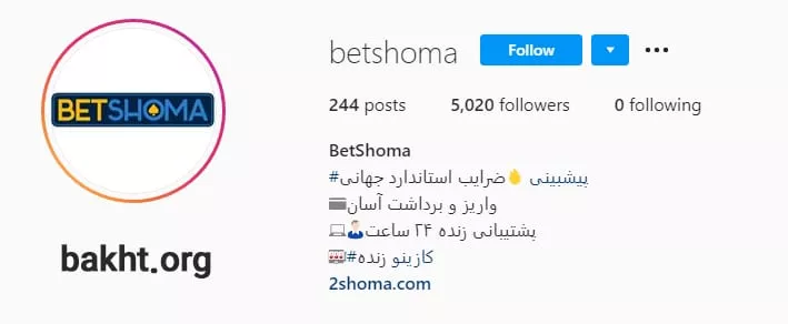 سایت شرط بندی بت شما در اینستاگرام و تلگرام حضور فعالی دارد، صفحه اینستاگرام بت شما 5 هزار دنبال کننده دارد و کانال تلگرامی بت شما هم نزدیک به 3 هزار نفر عضو دارد.