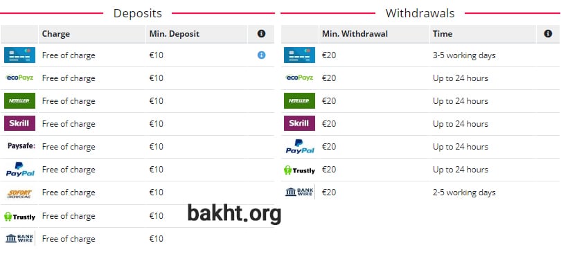 برای برداشت جایزه در سایت شرط بندی بتسون هم روشهای متعددی وجود دارد، حداقل مبلغ قابل برداشت 20 یورو است که ممکن است از 24 ساعت تا 5 روز طول بکشد.